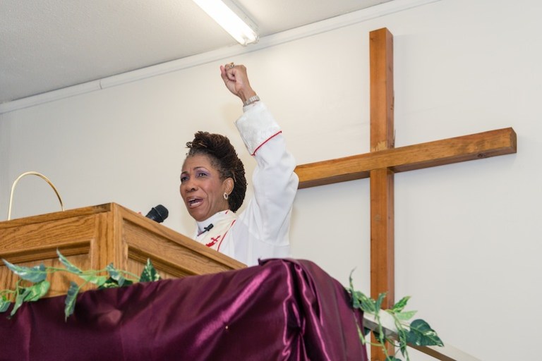 “It’s such a great cost to hold on to some of those sicknesses and diseases that eventually are going to take us out,” she exclaimed into a microphone, bobbing and weaving in a swirl of royal purple robes. “Just like Jesus talked about his death and prepared his disciples for his death, we ought to be preparing our disciples for our death!”