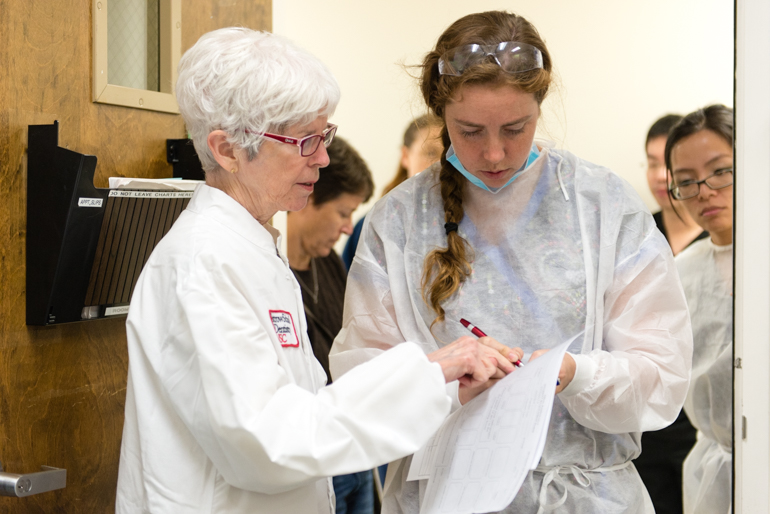 One morning in October, Elisa Chavez, a professor at the school, supervised two students as they treated patients. Chavez said that until they do a rotation in geriatric dental care, many of her students haven’t thought about the specific challenges. “When you have patients who have lots of medical issues, it can be intimidating,” she said.