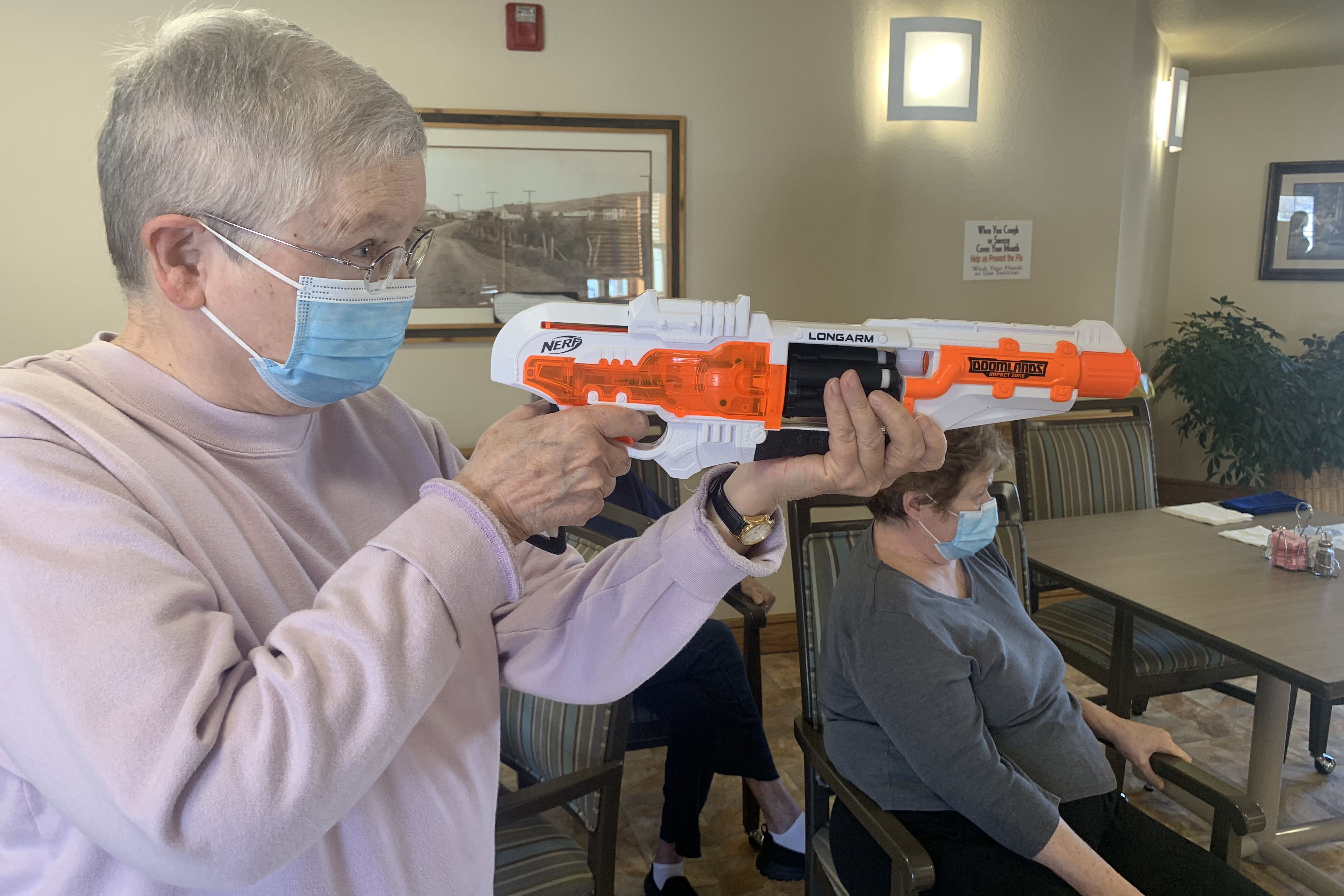 Residents can now gather in the common areas, wearing masks, to play the piano and do target practice with foam dart guns. And the excursion to a movie theater next month will be the first field trip in nearly a year. (Lawton is rooting for watching “The Sound of Music.”)