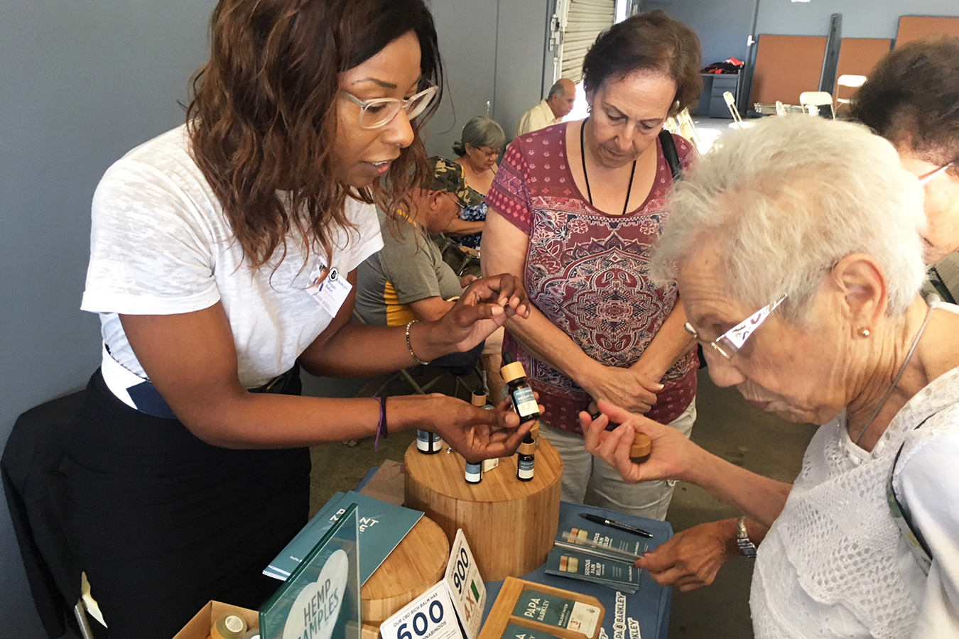 Several vendors on site took turns speaking to the group about the goods they sell. Then, the seniors entered the dispensary for the chance to buy everything from old-school rolled joints and high-tech vaporizer pens to liquid sublingual tinctures, topical creams and an assortment of sweet, cannabis-infused edibles.