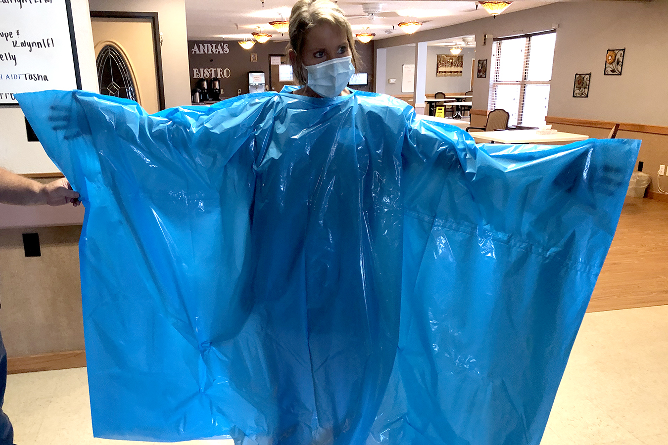 “It’s like putting a trash bag on,” said Pamela Black, the administrator of Enterprise Estates Nursing Center in Enterprise, Kansas. “There’s no real place for your hands to come out.”