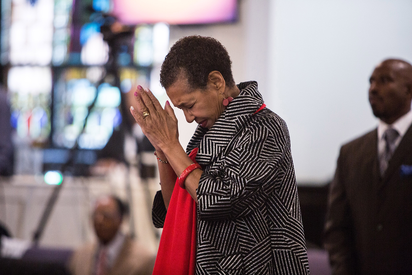 “God, guide us and direct us,” said White-Hammond as heads bowed. After they die, she said, her parishioners may see the face of Jesus, and “sit at his feet and be blessed.”