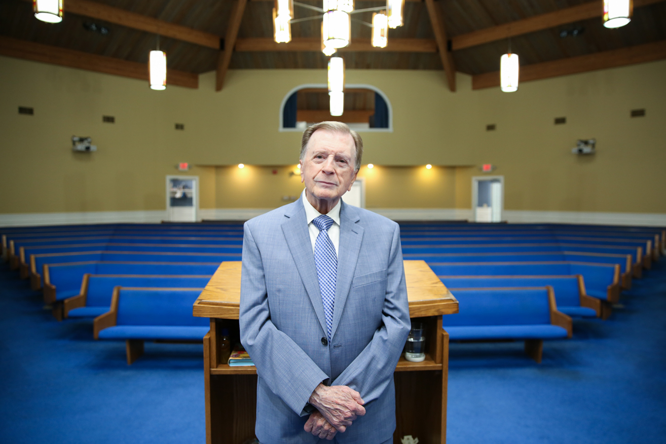 Some church leaders have refrained, afraid of offending congregants in a state where distrust of government intrusion runs deep. But not Lewis, who helped build Full Gospel Church on a rare flat parcel of land in 1972 and has led it ever since. With a smooth pelt of silver hair and a luminous smile, Lewis spends long stretches of the day in prayer, and he says God told him to protect his flock.