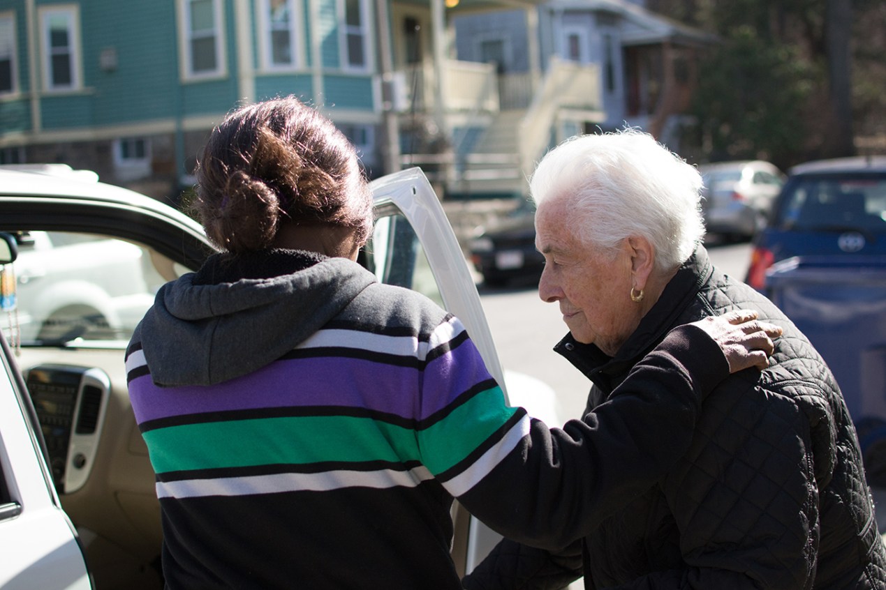 She started caring for Dicenso in her Boston home as the older woman was recovering from surgery in 2011. Like many older Americans, Dicenso doesn’t want to move out of her home, where she has lived for 63 years. She is able to keep living there, alone, with help from her daughter, Nirva and another in-home aide. She now sees Nirva once a week for walks, lunch outings and shopping runs. The two have grown close, bonding in part over their Catholic faith. Dicenso gushed as she described spending her 96th birthday with Nirva on a daylong adventure that included a Mass at a Haitian church. At home, Dicenso proudly displays a bedspread that Nirva gave her, emblazoned with the word LOVE.