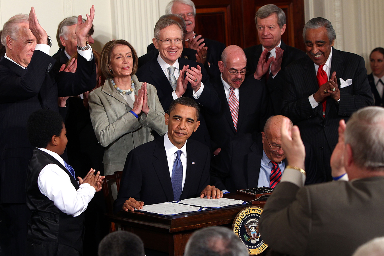 U.S. President Barack Obama is applauded after signing the Affordable Health Care for America Act during a ceremony with fellow Democrats in the East Room of the White House March 23, 2010 in Washington, DC. (Win McNamee/Getty Images)