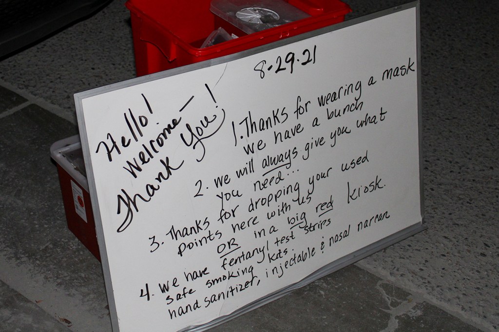On one Sunday in August, 56 people stopped by the van and 51 sharps containers were distributed. The coalition would not disclose how many needles it typically gives away.