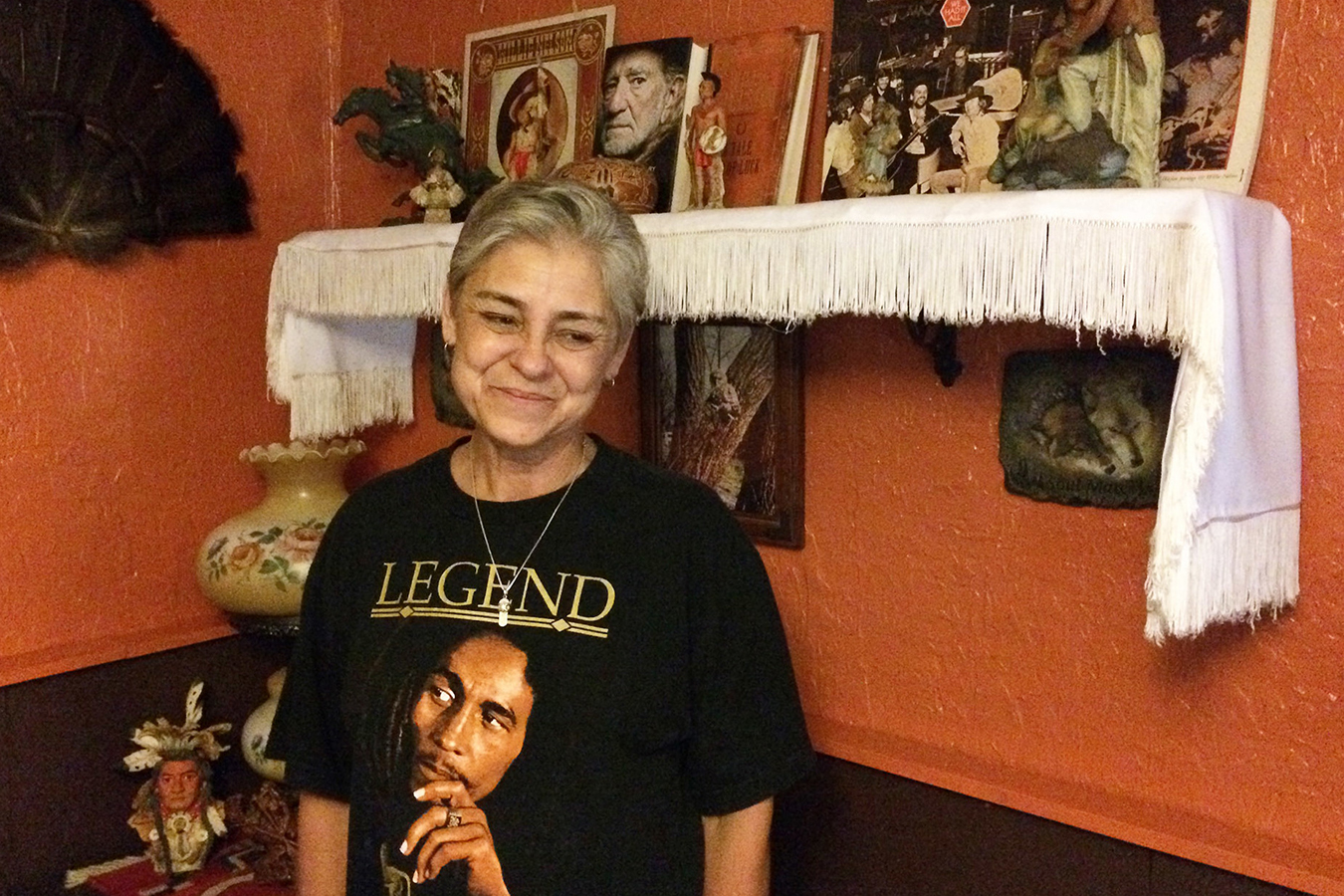 There’s a copy of Nelson’s mid-’70s LP “Red Headed Stranger.”