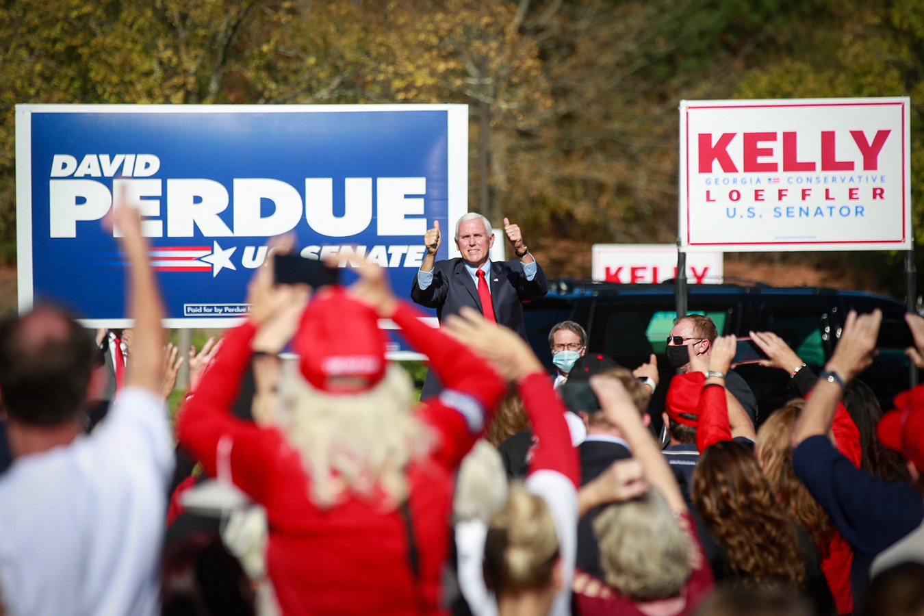 Vice President Mike Pence was the clear celebrity draw at a Nov. 20 campaign event for Georgia’s two incumbent U.S. senators, Kelly Loeffler and David Perdue. Both Republicans are fighting to keep their seats against two Democratic challengers in the runoff election set for Jan. 5.