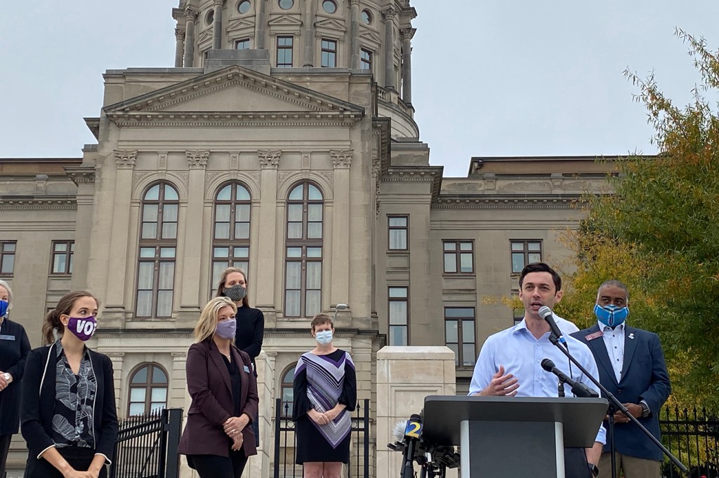 “This is why these Senate runoffs are so vital,” Ossoff explained at a small, physically distanced event in the shadow of the Georgia Capitol building in Atlanta on Nov. 10.