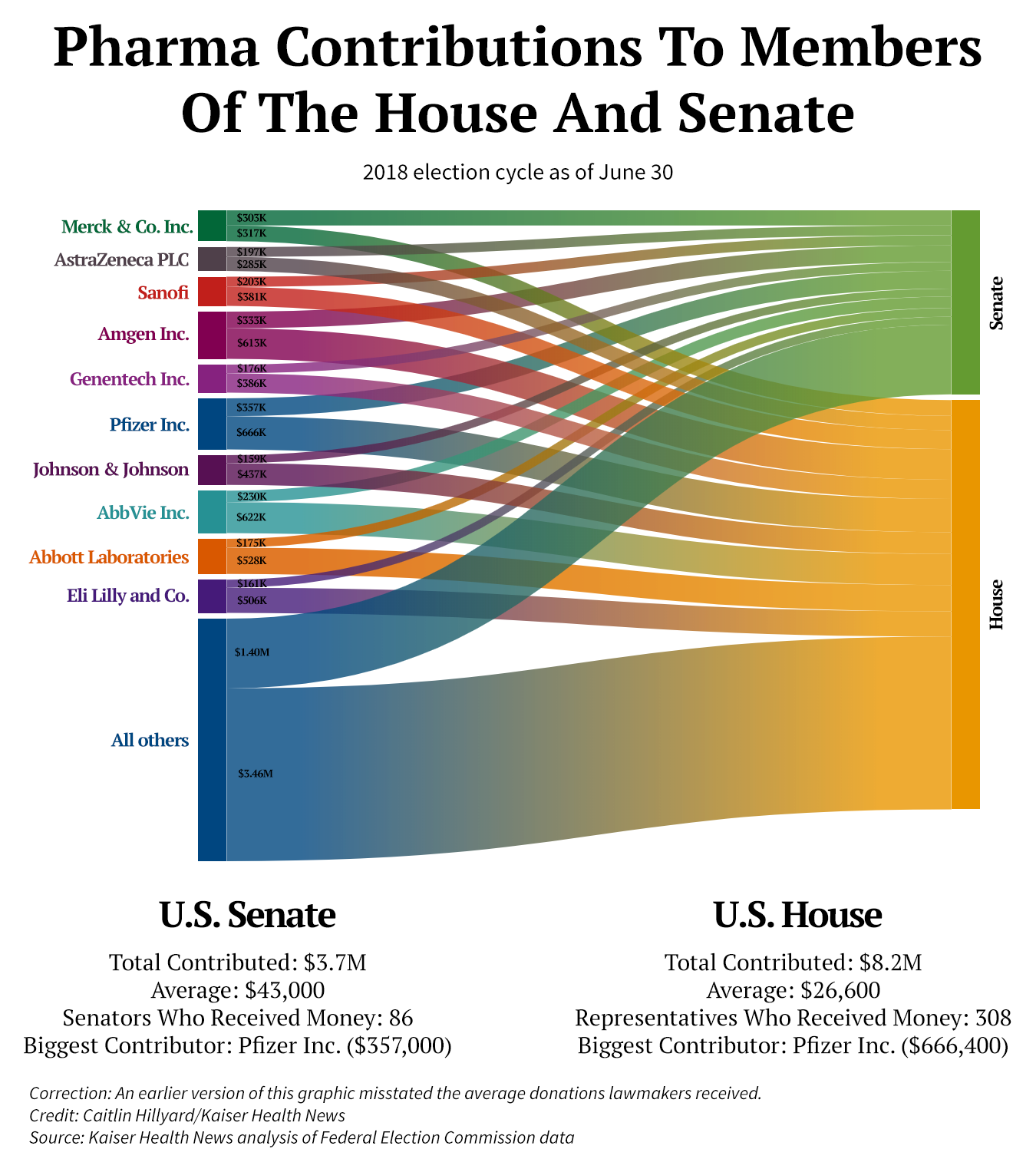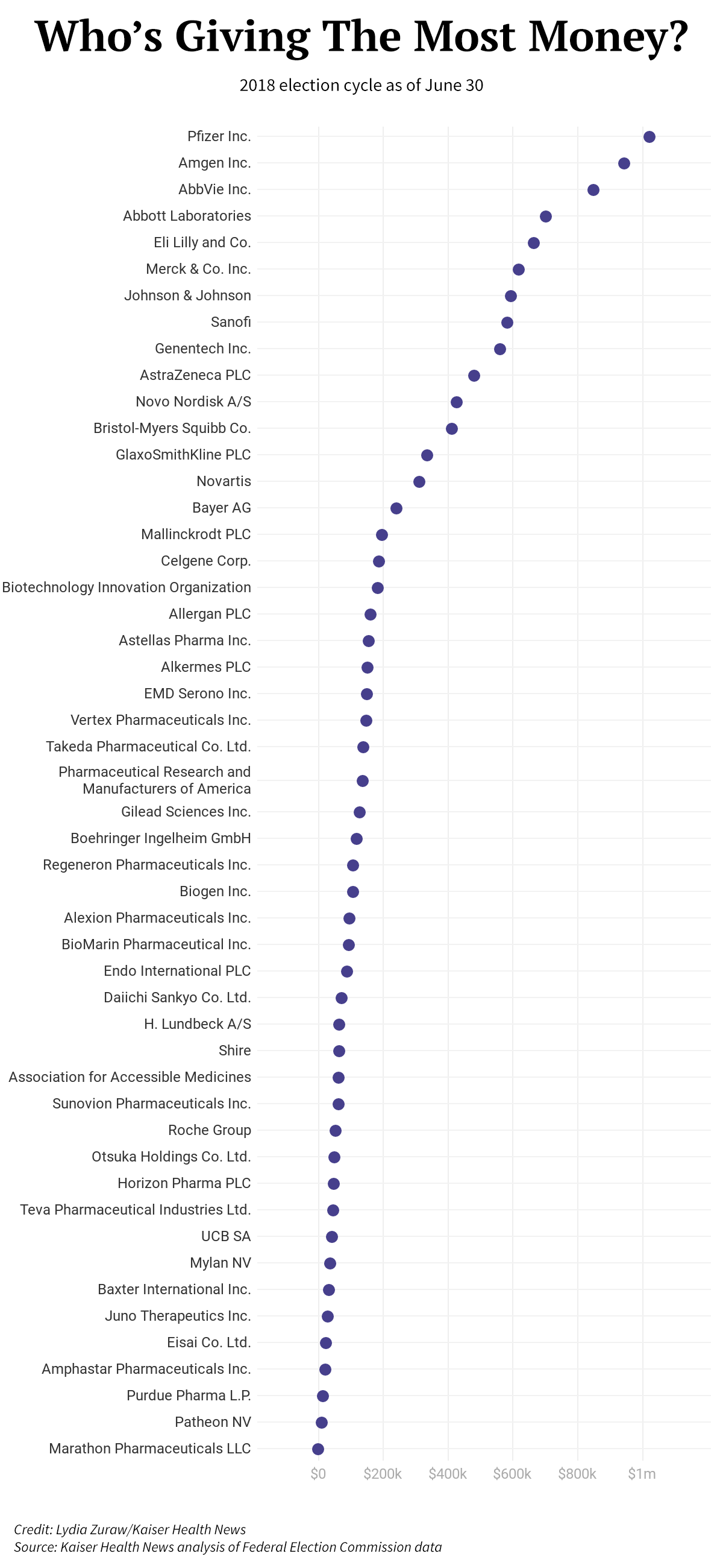 Before the midterm elections heated up, dozens of drugmakers had already poured about $12 million into the war chests of hundreds of members of Congress.