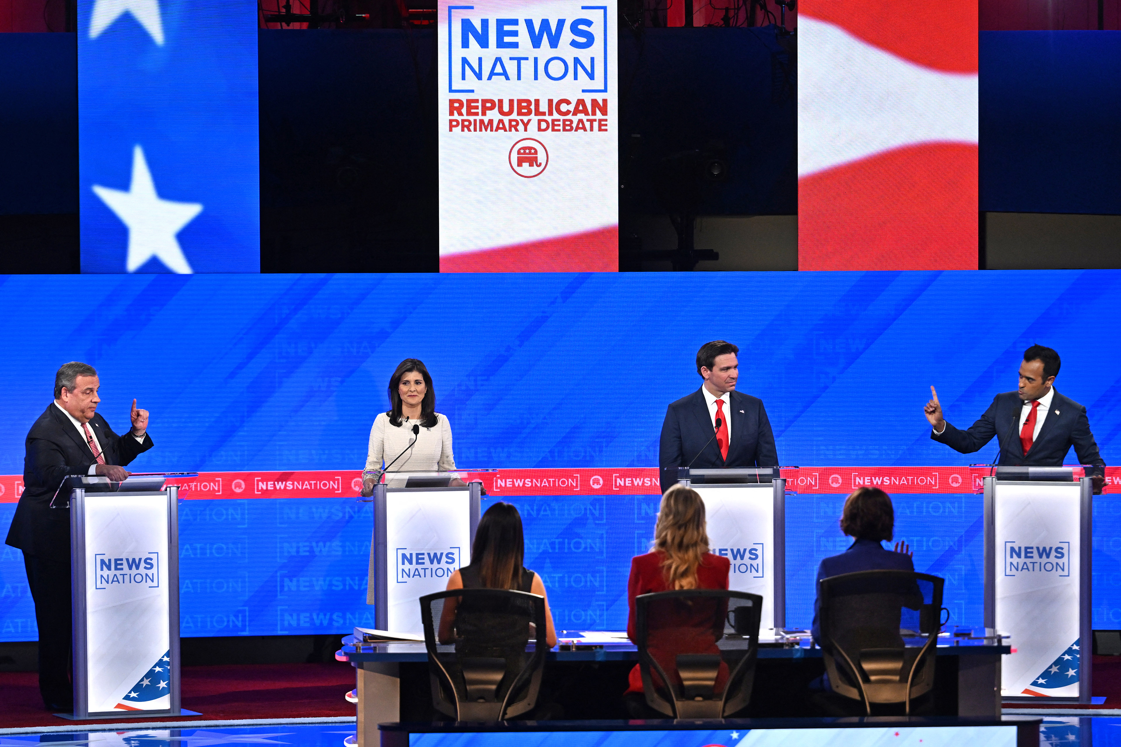 Florida Gov. Ron DeSantis, former South Carolina Gov. Nikki Haley, entrepreneur Vivek Ramaswamy, and former New Jersey Gov. Chris Christie faced off in Tuscaloosa, Alabama, just 40 days before the Iowa caucuses. They sparred over antisemitism and the war between Israel and Hamas as well as the conflict in Ukraine. There were references to cryptocurrency and TikTok. Candidates also attempted to tackle inflation, corruption, border issues, and the inner workings of the Department of Justice, among other things.