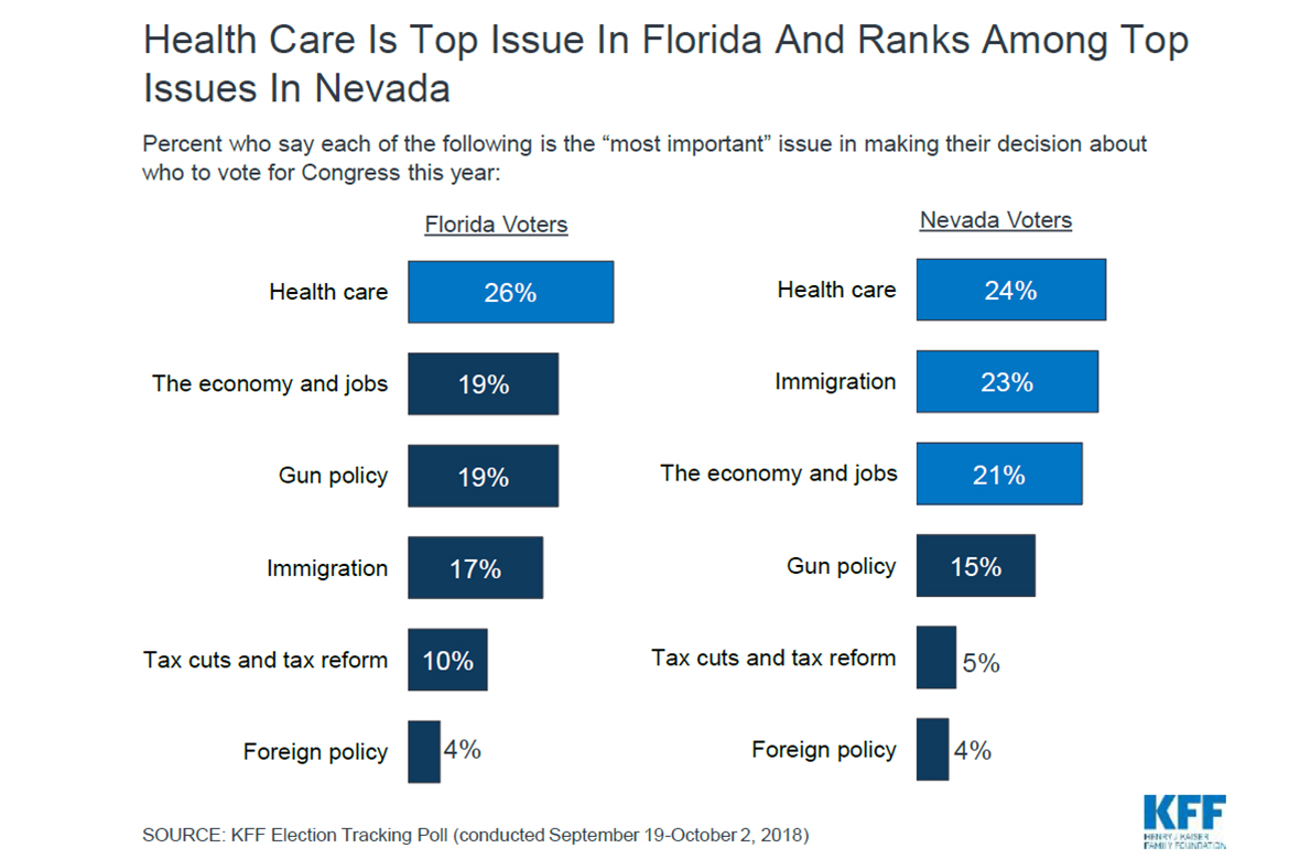Just under a third of Republicans in Florida and Nevada said that a candidate’s support of repealing the ACA is the most important health issue when they vote.