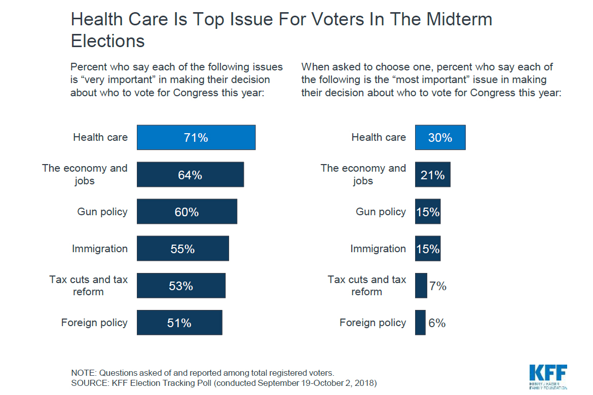 Seven in 10 people list health care as “very important” as they make their voting choices, eclipsing the economy and jobs (64 percent), gun policy (60 percent), immigration (55 percent), tax cuts (53 percent) and foreign policy (51 percent).