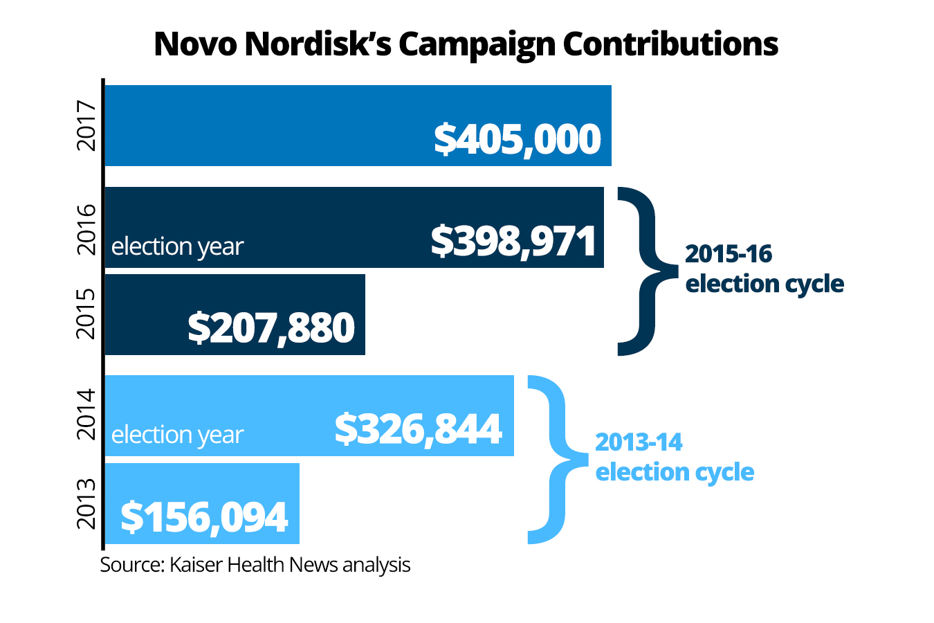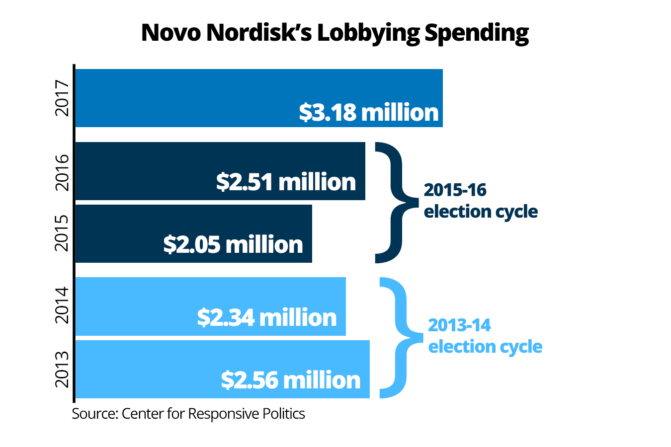 Novo Nordisk also spent $3.2 million lobbying Congress and federal agencies in 2017, its biggest-ever investment in directly influencing U.S. policymakers, according to the Center for Responsive Politics.