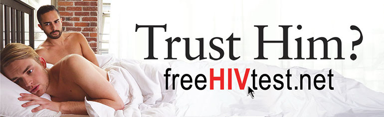 Another ad showed two men in bed, looking nervous, with the question “Trust Him?”