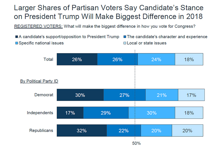 Voters looking toward the midterm elections are more motivated by a candidate’s stance on President Donald Trump than on any specific policy question.