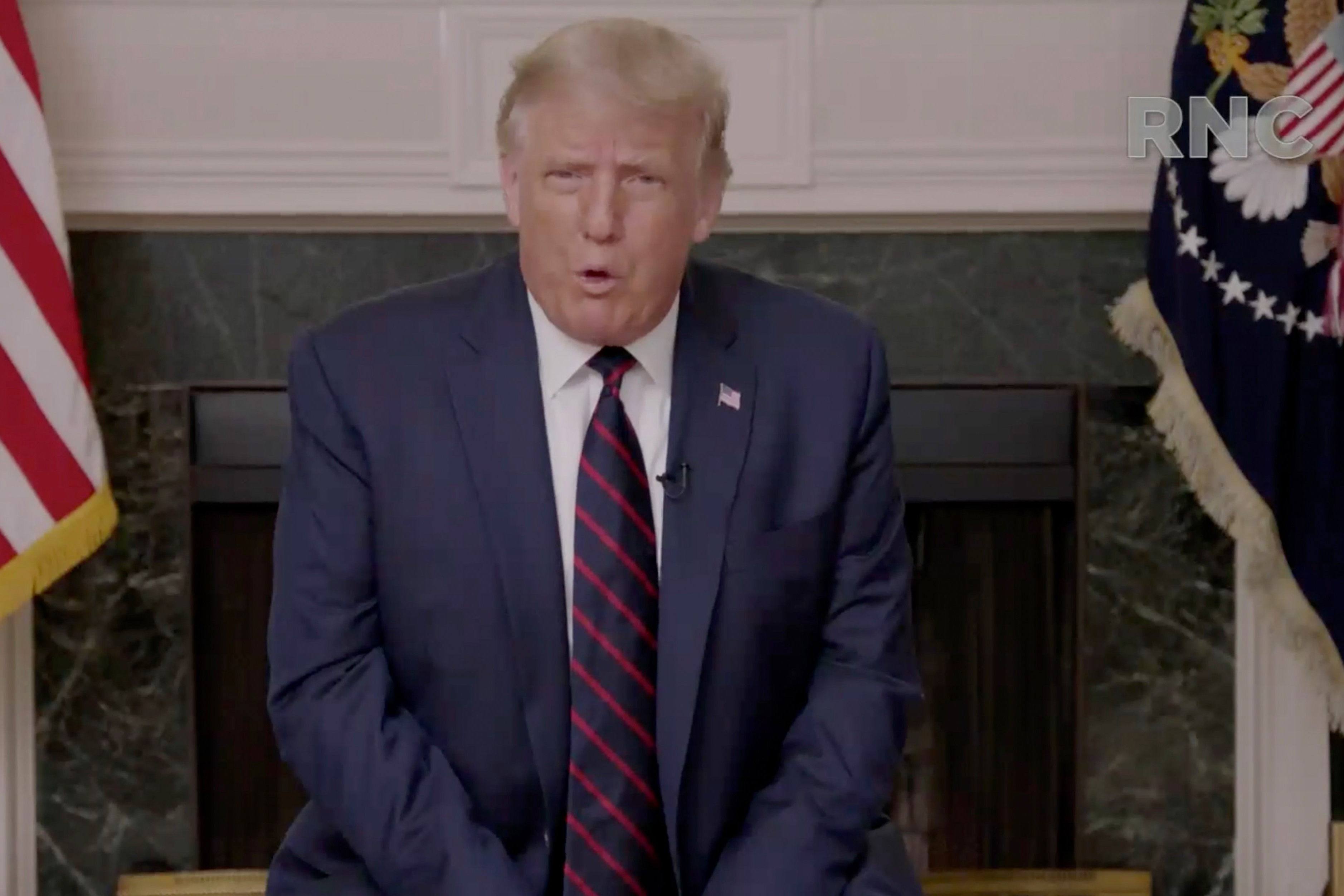 Video vignettes heralded Trump’s leadership during the coronavirus, focusing on things like Operation Warp Speed, the administration’s initiative to speed vaccine development, rather than the statistics: nearly 6 million Americans who have contracted COVID-19 or the more than 177,000 who have died. Trump also spoke with a group of first responders — including nurses, postal workers and a police officer from Colorado who said she had contracted COVID-19 in late March and has since recovered. “That means we don’t have to be afraid of you at all, right?” Trump said to her. “Once you’re recovered, we have the whole thing with plasma happening. That means your blood is very valuable, you know that, right?”