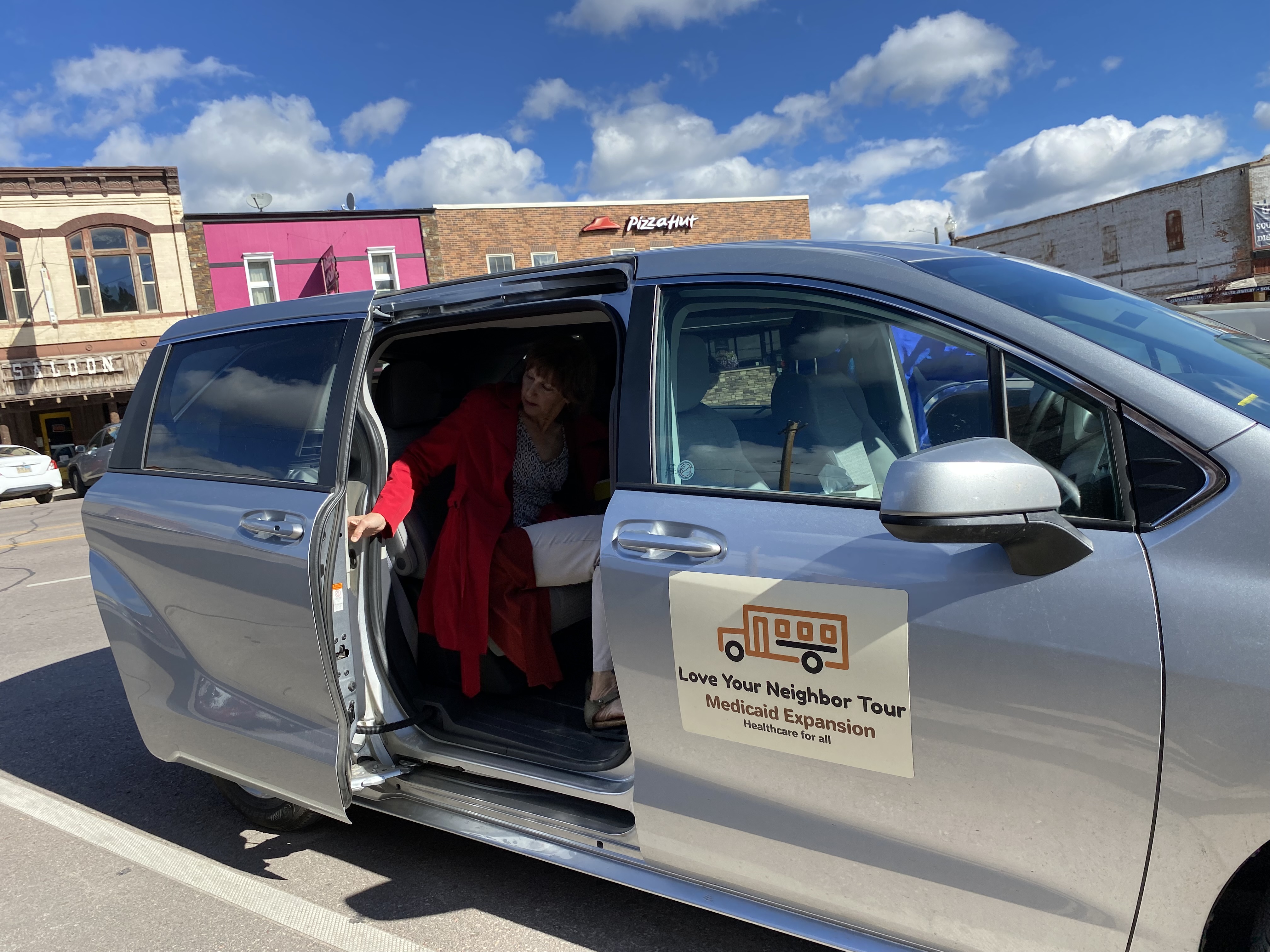 “If we are living our faith, then we have a serious obligation to love our neighbor and to show that in very practical ways,” Sister Teresa Ann Wolf, a Benedictine nun, said at one of the convoy’s stops. “And one very simple, concrete thing we can do to help our neighbor — like 40,000 neighbors in South Dakota who need health care — is to vote yes for Amendment D.”