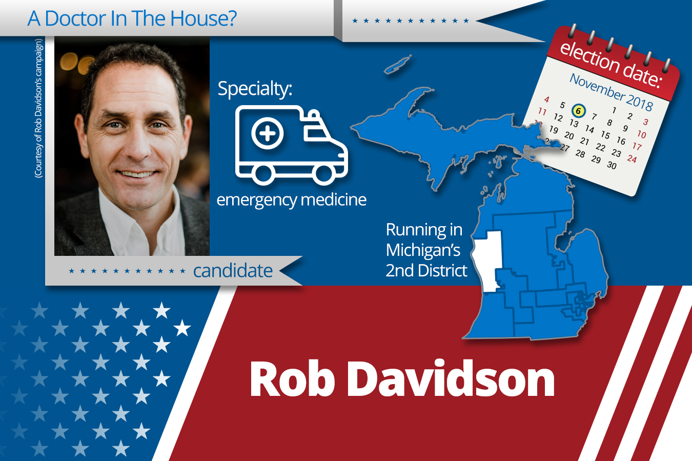 Dr. Rob Davidson, an emergency physician from western Michigan, had never considered running for Congress. Then came February 2017. The 46-year-old Democrat found himself at a local town-hall meeting going toe-to-toe with Rep. Bill Huizenga, his Republican congressman of the previous six years.