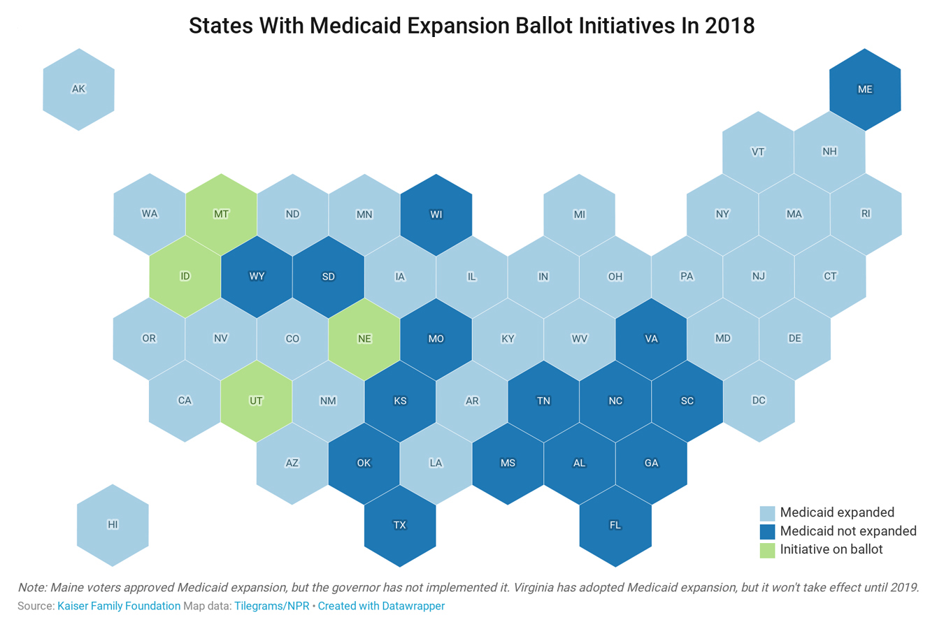 But the issue is in play in other states, too. Several non-expansion states have close or closer-than-expected races for governor where the Democrat has made Medicaid expansion a priority.
