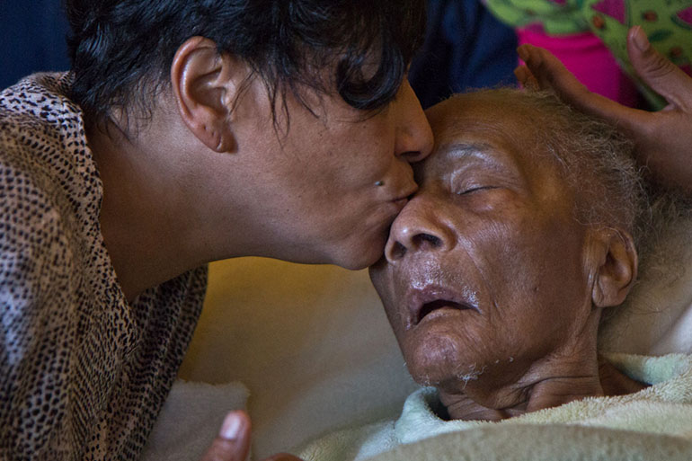 “Te asusta”, dijo Angela Bobo. “Cuando tengo dolor, puedo decirlo. Ella no puede decirme cuando está dolorida”. Así que cuando la escara de su madre no sanaba después de tantos días, “entonces es cuando me dije: ‘tengo que llevarla al médico, porque yo no sé qué está pasando'”.