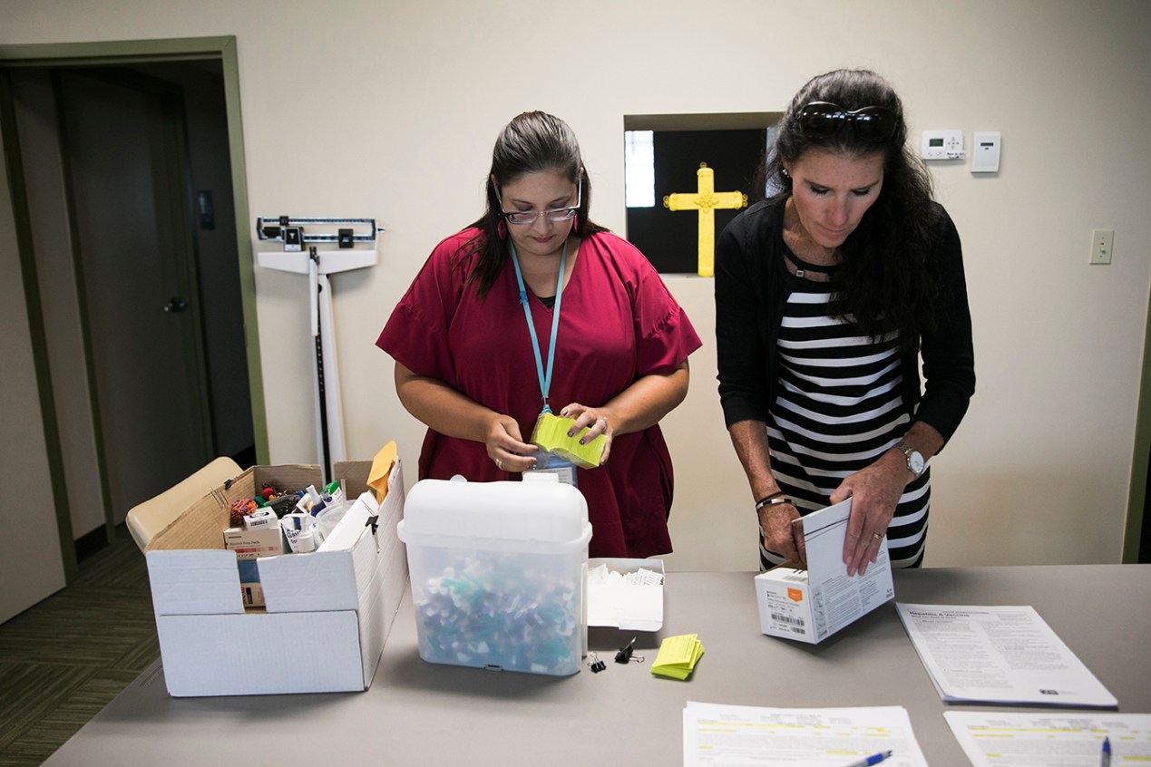 En una tarde reciente, Rodríguez y la enfermera del departamento de salud Rachel Flossie vacunaron a 26 participantes de un programa de reingreso a la sociedad posterior a la cárcel dirigido por South Street Ministries. Los participantes hicieron fila rápidamente para recibir sus dosis, algunos haciendo una mueca por el pinchazo.