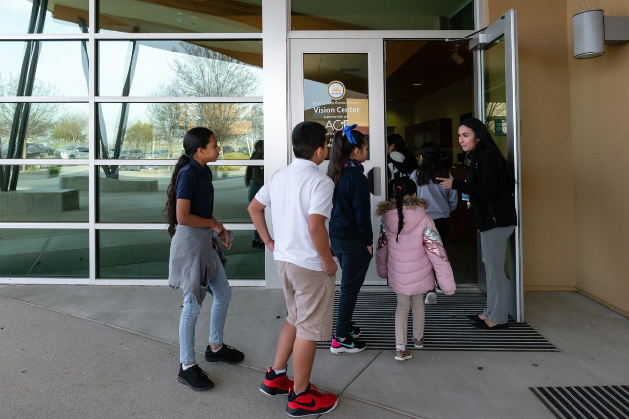 Daisy se encontraba entre los 12 estudiantes que fueron en autobús al Centro de Visión del Distrito Escolar Unido de Delano, adyacente a la Escuela Pioneer, una primaria con aproximadamente 1,000 estudiantes. Casi todos los estudiantes de Pioneer son hispanos y alrededor de tres cuartos califican para almuerzos gratis.