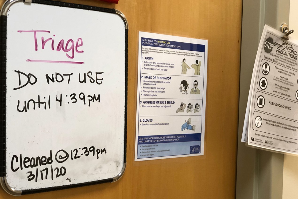 HealthPoint dirige más de una docena de clínicas en todo el oeste de Washington. Ahora, en la entrada de sus centros, el personal hace preguntas a los pacientes para identificar los síntomas de COVID-19 y controlar los mantiene a distancia uno del otro una vez dentro.