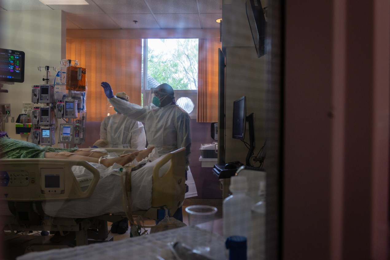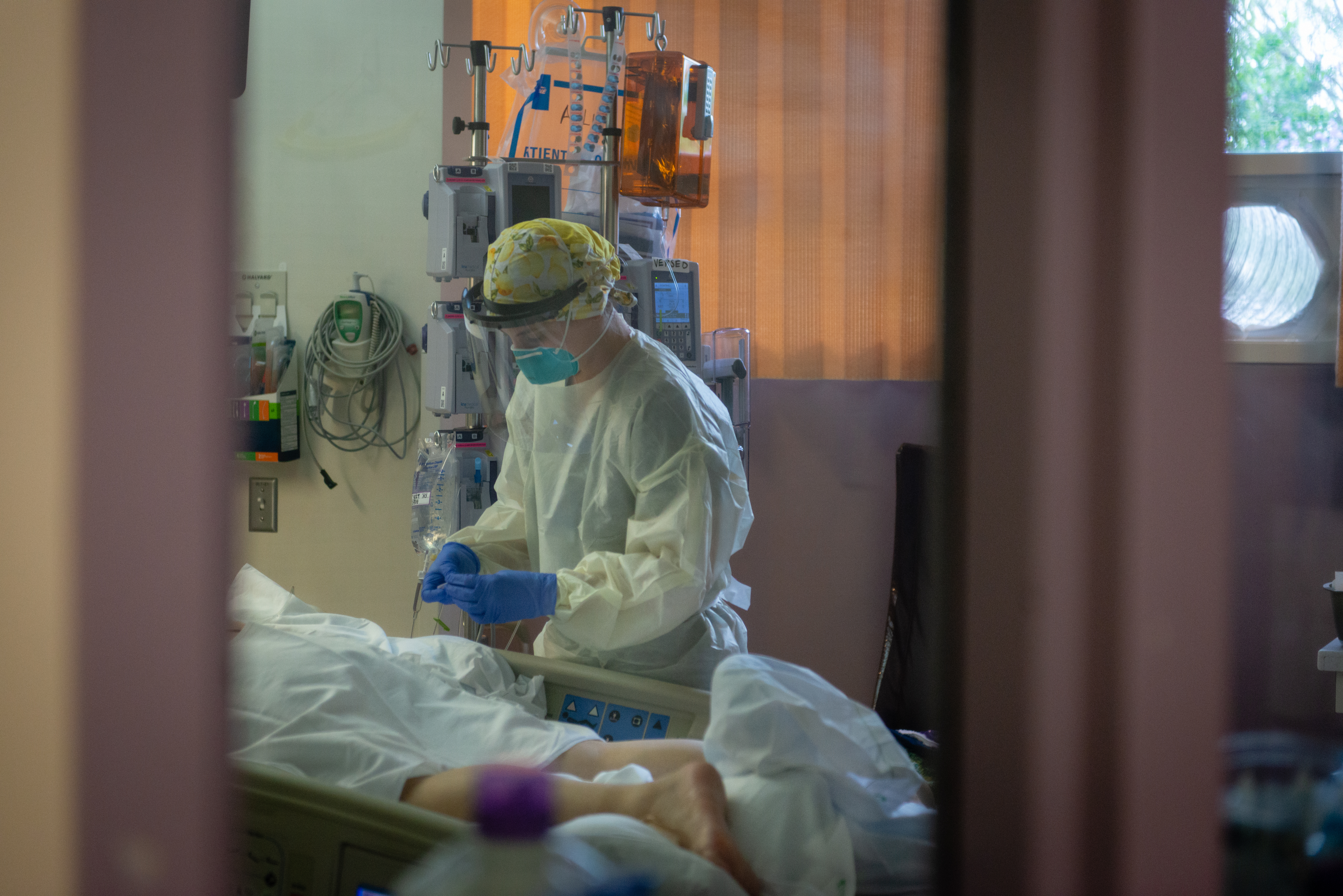 La reportera de KHN Heidi de Marco visitó las terapias intensivas de ambos hospitales y documentó los esfuerzos para mantener vivos a los pacientes.