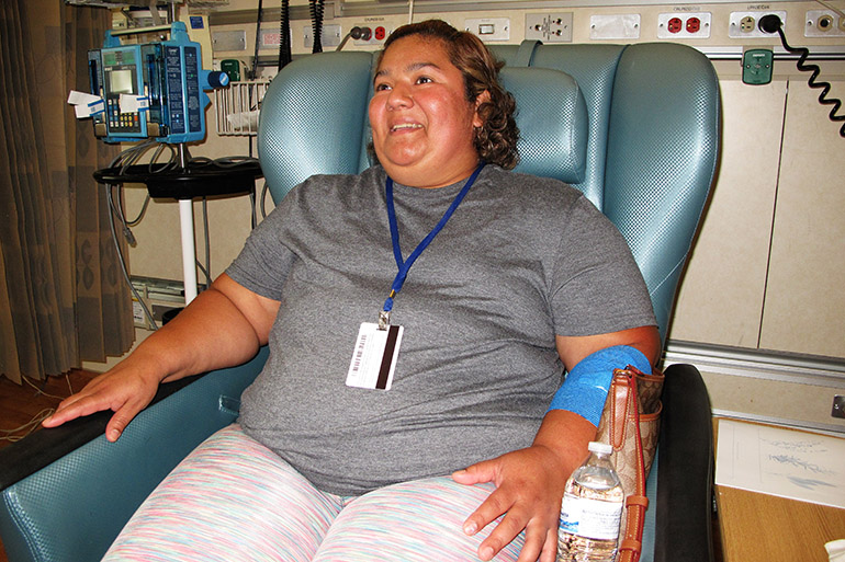 Aldana viaja desde Olney, Maryland, al Clinical Center de los NIH cada mes para recibir la medicación por vía intravenosa. “Me siento mejor, me duelen menos las articulaciones”, dijo.