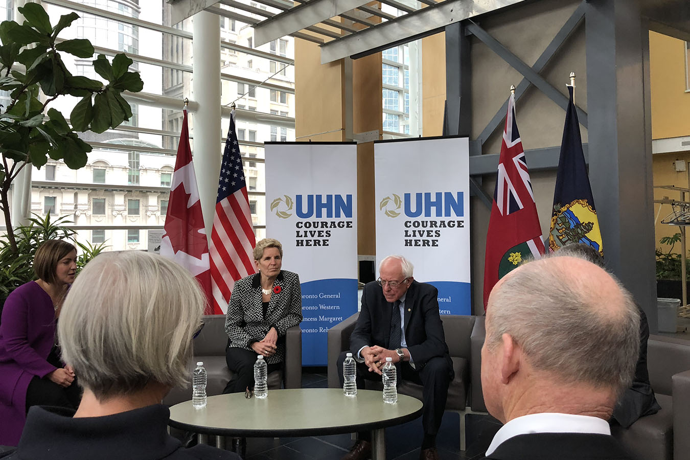 “Han logrado brindar atención médica a todos los hombres, mujeres y niños sin ningún costo de su propio bolsillo”, dijo Sanders a la prensa mientras hablaba en la planta baja del Hospital General de Toronto. “La gente viene a una instalación como ésta, que es uno de los hospitales más destacados de Canadá. Se someten a una cirugía cardíaca complicada, y se van sin pagar ni un centavo”.