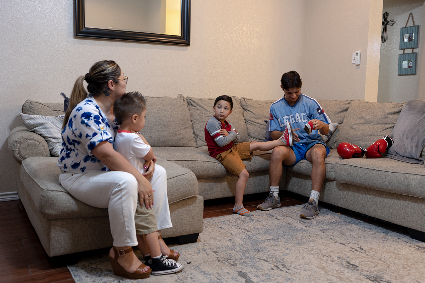 Sus hijos mayores, Kai Flores, 13, Andrew Vaiz, 16 y Alexis Vaiz, 18, a menudo están callados, tristes o enojados. A los dos mayores les recetaron antidepresivos poco después de perder a su padrastro porque la ansiedad no los dejaba concentrarse o dormir.