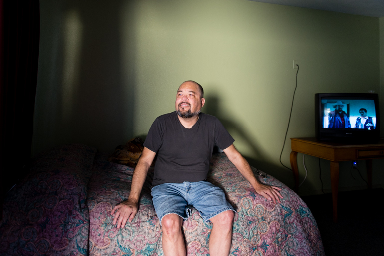 Justo al final de la autopista de Disneyland, en la ciudad Buena Park, en el condado de Orange, Paul Leon está parado fuera de lo que queda de un hotel de mala muerte. Sobre él, una señal de color rosa desteñido promociona el Coral Motel, cuyos cuartos, en sus buenas épocas, costaban 35 dólares la noche.
