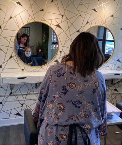 La pandemia de COVID centró la conversación y las bromas en el salón. En lugar de admirar la blusa o los zapatos de una clienta, Herrera comentó sobre la mascarilla de McFall: “¡Es tan linda!.