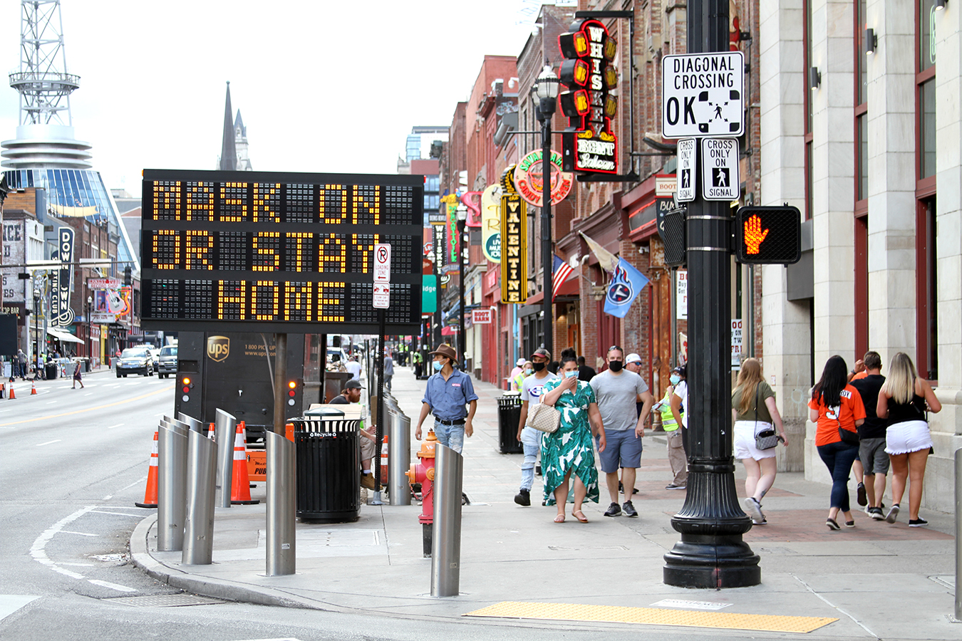 En destinos como Nashville que han dado la bienvenida a los visitantes durante la pandemia, el turismo no se ha recuperado por completo. Pero algunas noches de fin de semana, el distrito turístico colmado de luces de neón puede atraer multitudes.