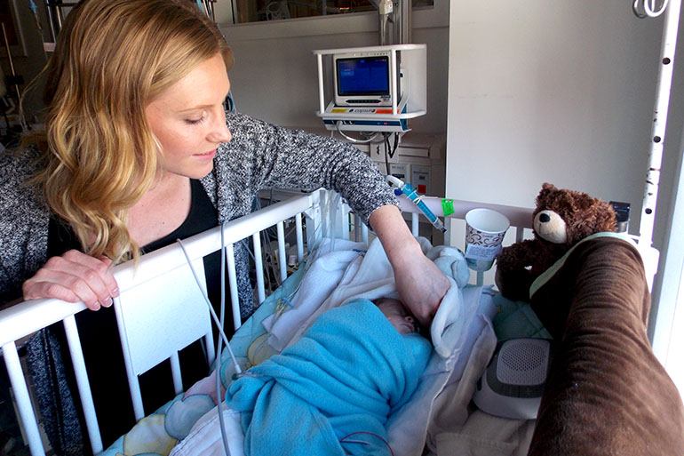 Hace pocos días Brittney Scott estaba de pie junto a la cuna de su hijo Samuel, de dos semanas, en la NICU, mientras el pequeño dormía. Estaba internado allí problemas intestinales.