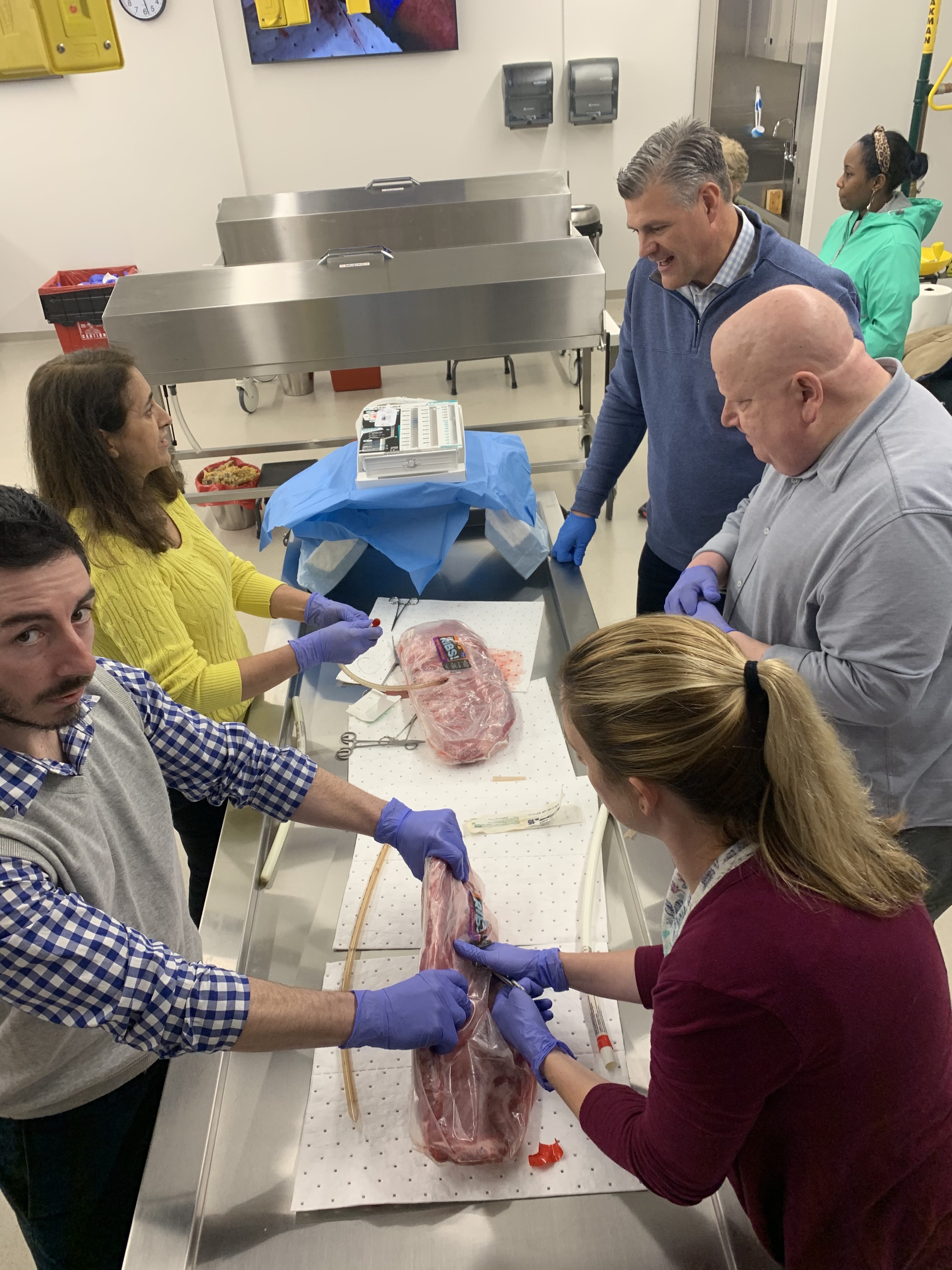 Joshua Allen, a nurse practitioner at a small Kentucky hospital, snaked a rubber hose through a rack of pork ribs to practice inserting a chest tube to fix a collapsed lung.