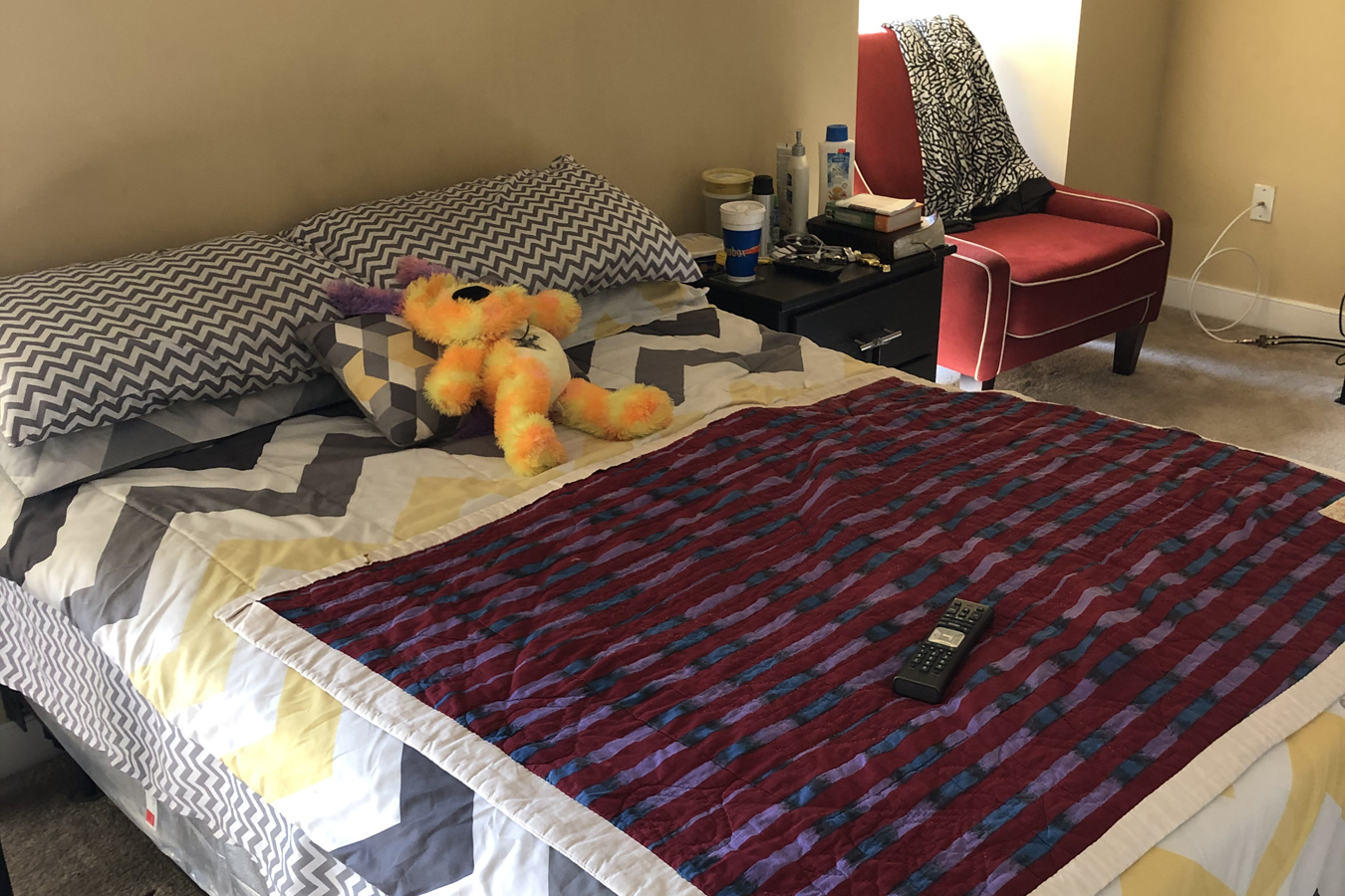“When I first moved in here,” Moore explained, “it took me about a month to even sleep in my bed. I slept on a couch.”