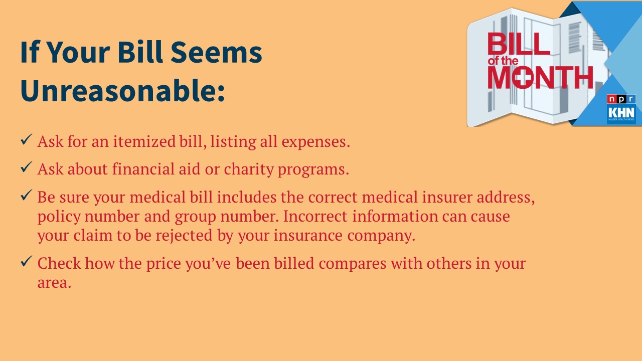 In 2018 Kaiser Health News and NPR teamed up to create “Bill of the Month,” a crowdsourced investigative series in which we dissect and explain medical bills you send us. We have received nearly 2,000 submissions of outrageous and confusing medical bills from across the country.