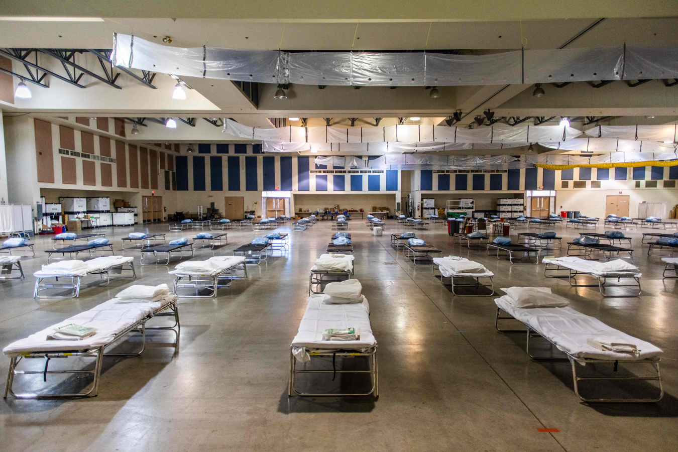The city currently has 1,300 beds, including 200 ICU beds. If the number of patients surges as it has in New York, officials anticipate needing 5,000 additional beds.