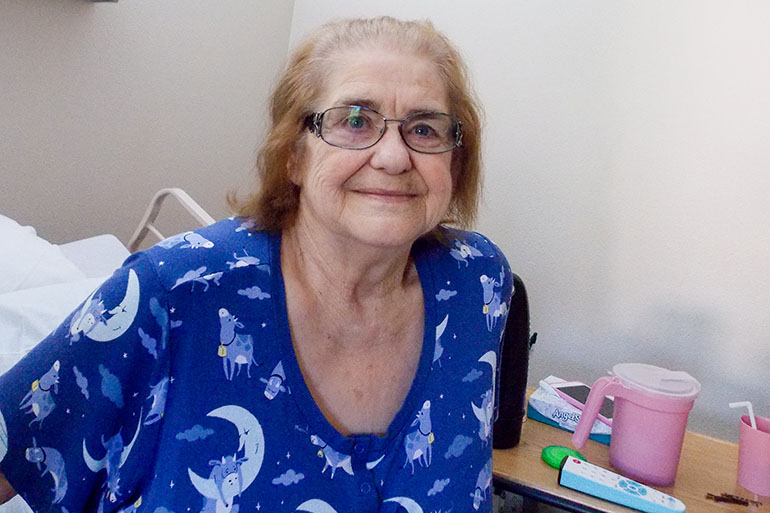 Audrey de Jesus, 83, arrived at Chaparral House just a few months ago. She uses a wheelchair and an oxygen tank. Beside her bed sits a Bible and a book of Psalms.