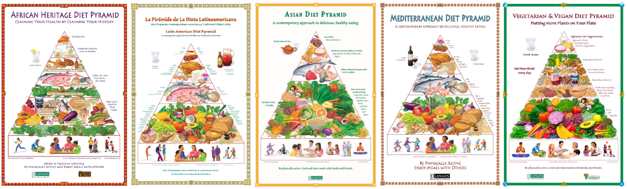 Oldways, a Boston-based organization, has been trying for decades. It first developed a Mediterranean food pyramid in 1993 and has since created charts for African, Latin American and Asian diets, as well as ones for vegetarians and vegans. It also offers classes, such as a six-week Taste of African heritage program. Kelly Toups, director of nutrition at Oldways, said the organization also participates in sessions with the USDA. But not much has changed.