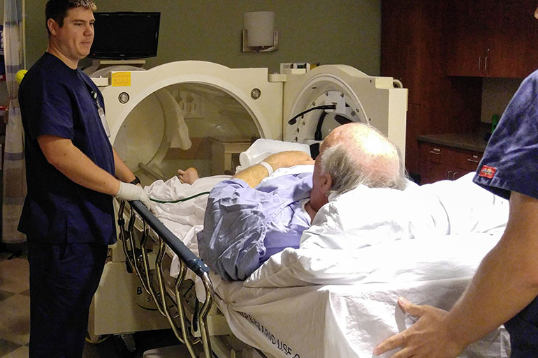 Hyperbaric treatment, increasingly given to diabetics — many of them elderly with persistent wounds — involves breathing pure oxygen inside a pressurized air chamber typically for two hours each weekday, often for more than a month. Twenty outpatient sessions can bring a hospital $9,000 in revenue.