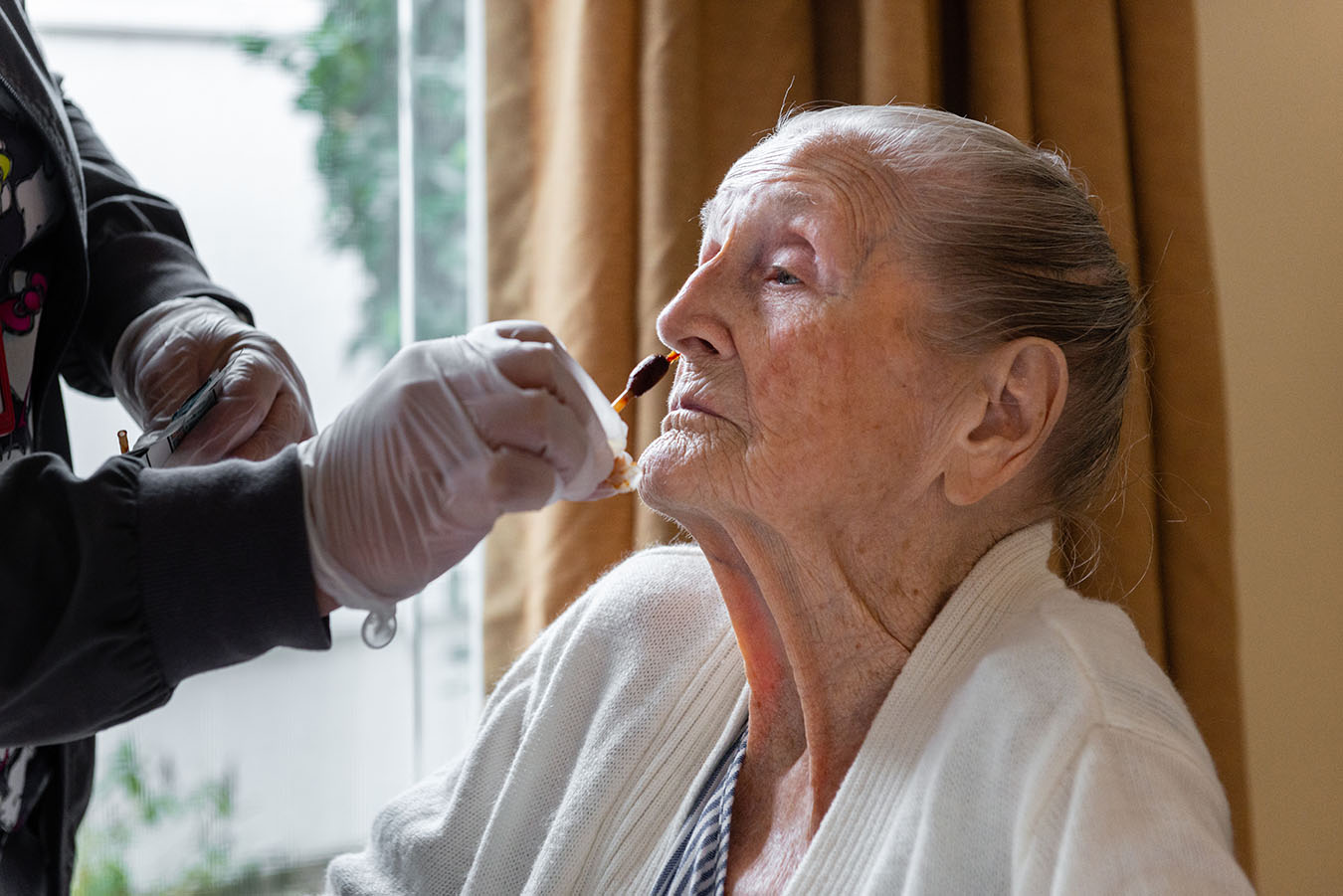 One recent morning at Coventry Court Health Center, a nursing home in Anaheim, Calif., 94-year-old Neva Shinkle sat patiently in her wheelchair. Licensed vocational nurse Joana Bartolome swabbed her nose and asked if she remembered what it did.