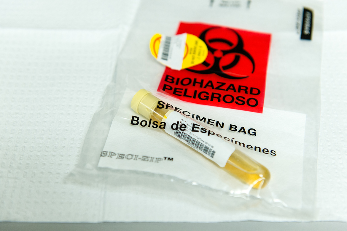 Gloved lab techs keep busy inside the cavernous facility, piping smaller urine samples into tubes. First there are tests to detect opiates that patients have been prescribed by CPS doctors. A second set identifies a wide range of drugs, both legal and illegal, in the urine. The doctors’ orders are displayed on computer screens and tracked by electronic medical records. Test results go back to the clinics in four to five days. The urine ends up stored for a month inside a massive walk-in refrigerator.