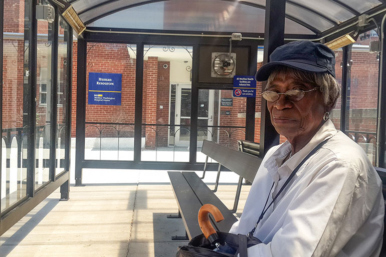 Edith Stowe, 83, waited patiently on a recent afternoon at the bus stop outside MedStar Washington Hospital Center in the District of Columbia. It’s become routine for her, but that doesn’t make it any easier.