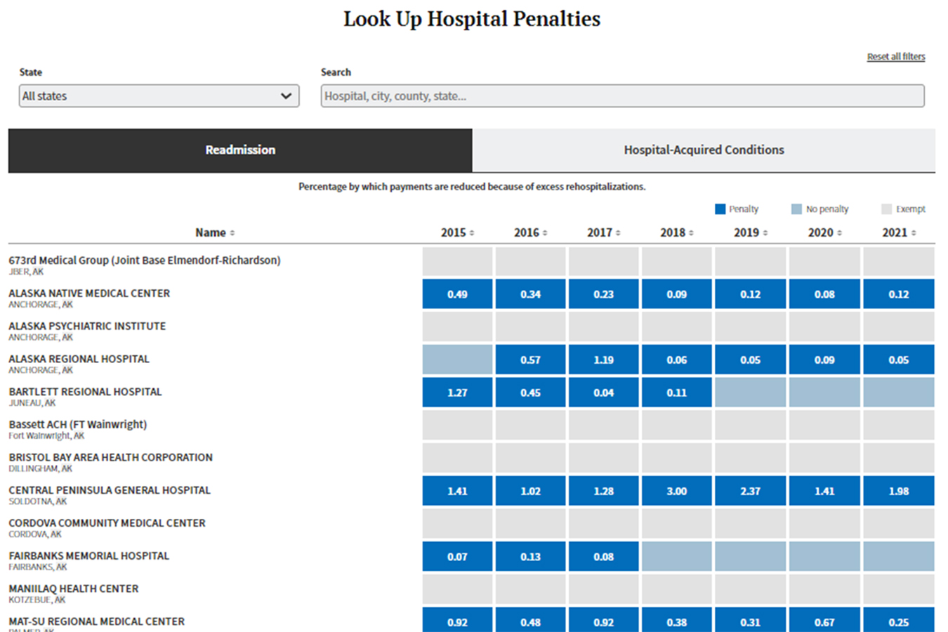 For this year, the penalties remain in effect. Retroactive to the federal fiscal year that began Oct. 1, Medicare will lower a year’s worth of payments to 2,545 hospitals, the data show. The average reduction is 0.69%, with 613 hospitals receiving a penalty of 1% or more.