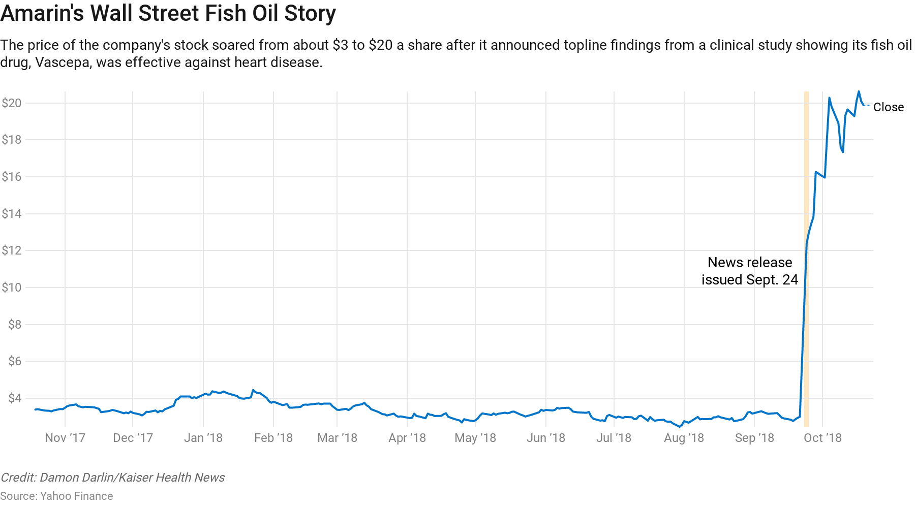 At the end of September, Amarin Corp. teased some early findings for Vascepa, its preventive medicine for people at risk of heart disease. The claim was astounding: a 25 percent relative risk reduction for deaths related to heart attacks, strokes and other conditions. Headlines proclaimed a potential game changer in treating cardiovascular disease. And company shares quickly soared, from $3 a share to about $20.