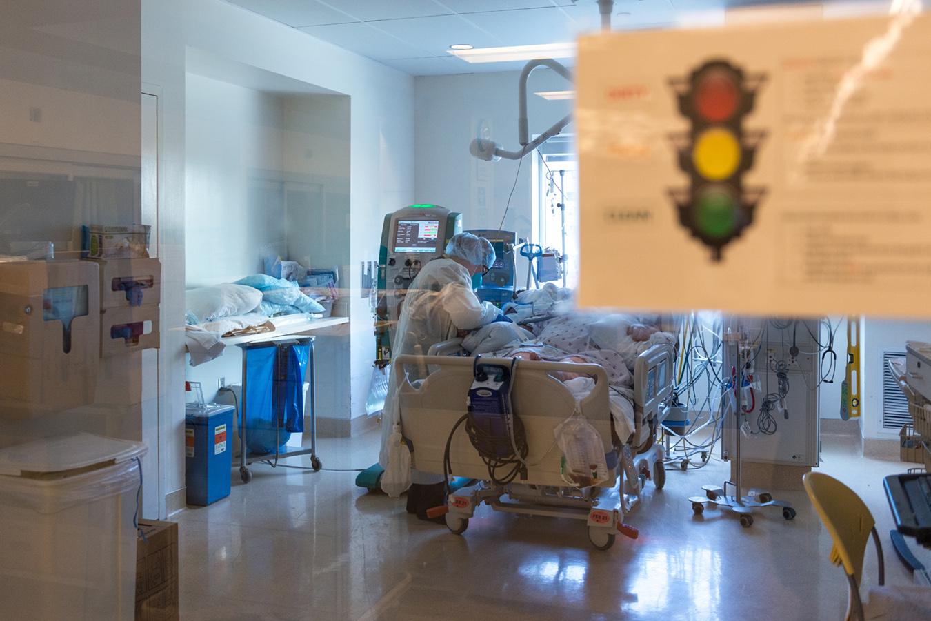 The worst cases end up lying amid a tangle of tubes and bags, in ICU rooms designed to prevent air and viral particles from flowing out into the hall. The sickest among them, like the woman described above, need machines to breathe for them. They are fed through nose tubes, their bladders draining into catheter bags, while intravenous lines deliver fluids and medications to relieve pain, keep them sedated and raise their blood pressure to a level necessary for life.
