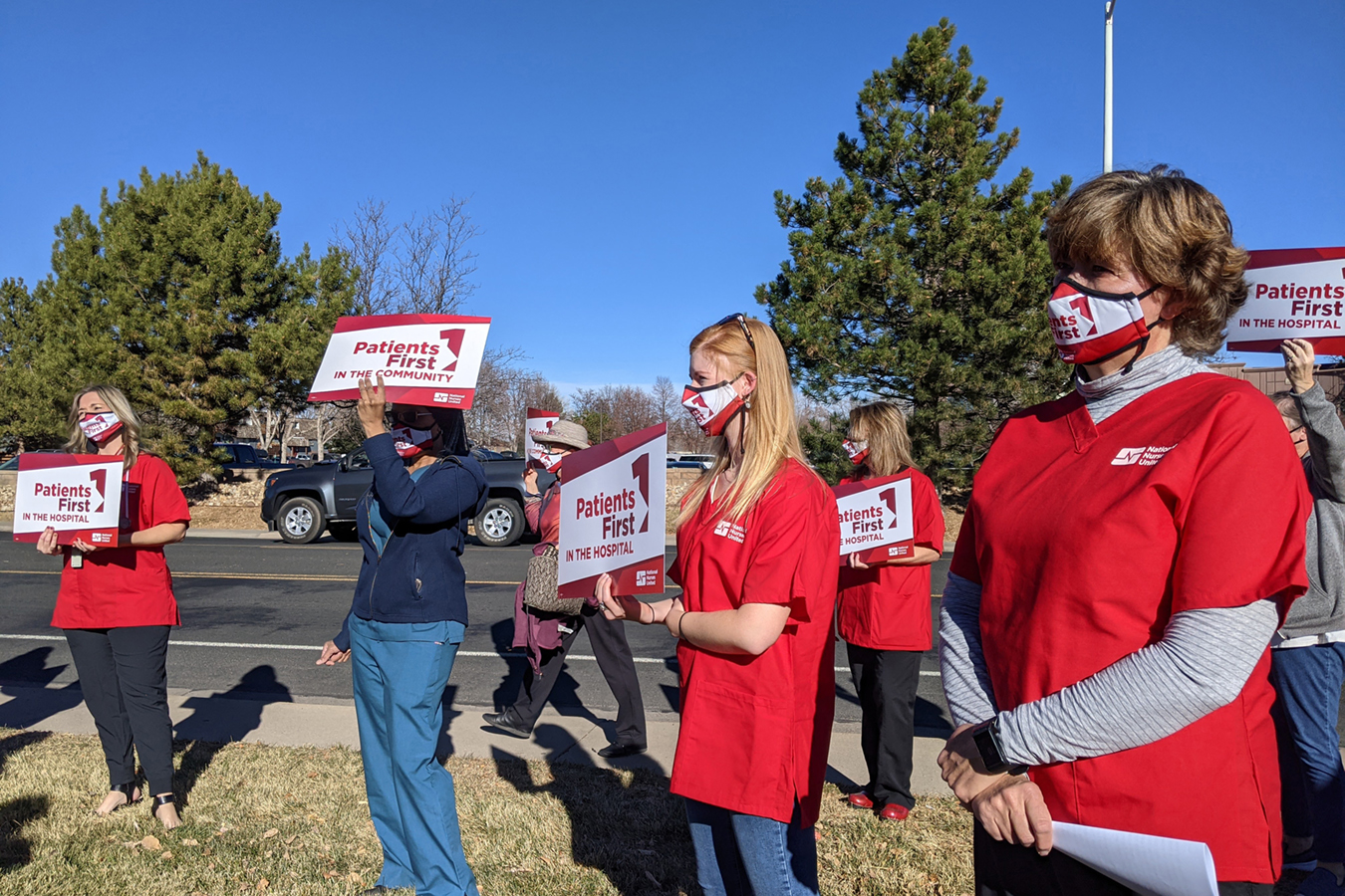She and others protested outside the hospital in early December. They said the company that runs the hospital, Centura Health, this year had employed aggressive union-busting tactics, including disputing a handful of votes, which dragged out the union election for about five months. In another instance, her colleague Kris Kloster said, Centura, founded by Catholic nuns, issued company-wide emails announcing raises and retention bonuses for everyone except nurses at her hospital.